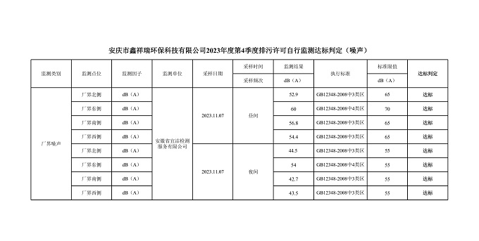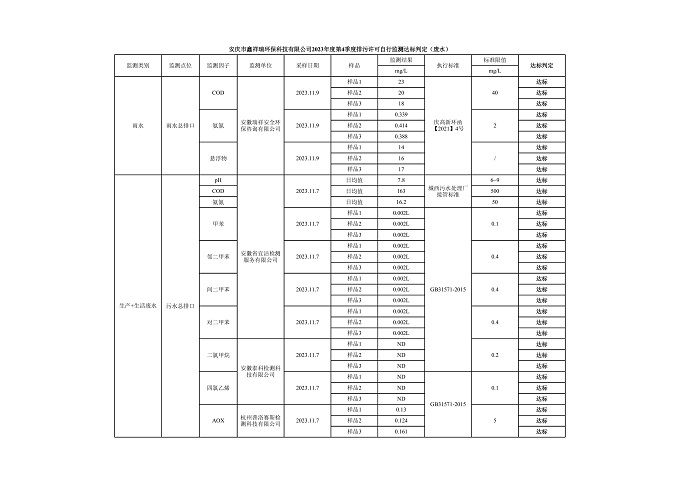安慶市鑫祥瑞環(huán)??萍加邢薰?023年第4季度排污許可自行監(jiān)測(cè)公開(kāi)